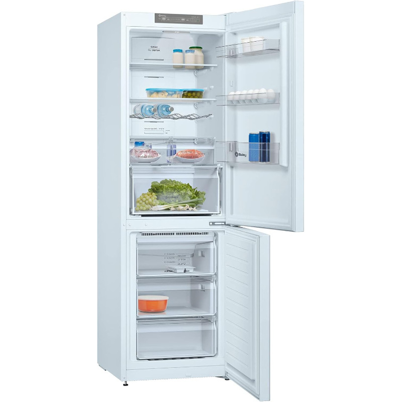 Combi frigorífico Balay modelo 3KFE563WI con capacidad total de 324 L (según especificación del fabricante). Diseño tipo frigorífico-congelador con compartimentos independientes para refrigeración y congelación de alimentos. Incorpora tecnología No Frost (sistema de refrigeración por aire) para el control de la escarcha dentro del aparato. Referencia de producto: 3KFE563WI, útil para identificación en catálogos, documentación técnica y compatibilidad de recambios. Producto destinado a la conservación de alimentos a temperaturas de refrigeración y congelación mediante funcionamiento eléctrico de red.