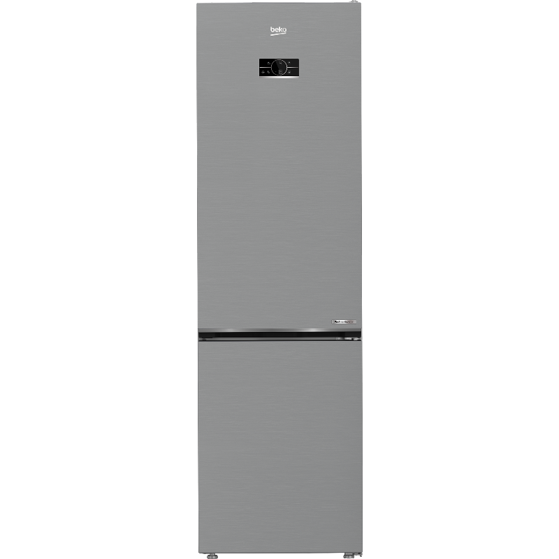 Beko B5RCNE406HXB es un frigorífico combi con tecnología No Frost y capacidad total de 355 L. Integra en un mismo aparato un compartimento de refrigeración y un compartimento de congelación. La tecnología No Frost se basa en refrigeración por aire con desescarche automático gestionado por el sistema del equipo. Incorpora un sistema de control de temperatura integrado para la regulación del frío en los compartimentos, conforme a la configuración disponible del fabricante. Uso previsto: conservación de alimentos y bebidas mediante refrigeración y congelación. Identificación del producto: marca Beko, modelo B5RCNE406HXB.