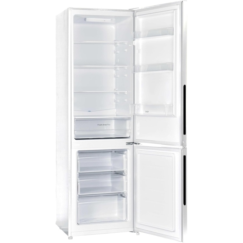 Frigorífico combi Candy CCG3L517EW de libre instalación con volumen total de 260 L distribuido entre compartimento frigorífico y compartimento congelador. Clase de eficiencia energética E según la clasificación europea dentro del rango de A a G. Dimensiones de 176 cm de altura y 55 cm de anchura. Nivel de ruido de 39 dB(A). Sistema de frío Low Frost. Configuración vertical con compartimentos independientes accesibles mediante puertas frontales. El interior incluye 4 estantes, 3 balconeras en la puerta y cajón destinado al almacenamiento de alimentos. Sistema de control electrónico de temperatura mediante regulador interno. Sistema de iluminación interior mediante tecnología LED. Puertas reversibles para instalación con apertura en diferentes sentidos. Funcionamiento mediante conexión a red eléctrica doméstica. Configuración destinada a instalación independiente. Estructura exterior con acabado en color blanco.