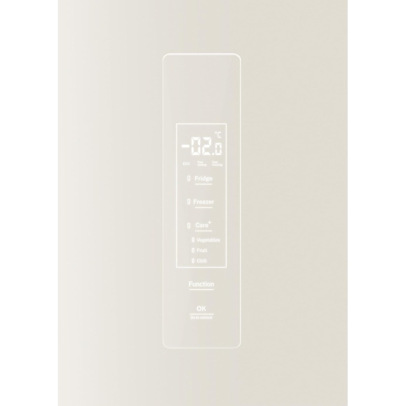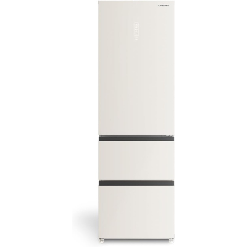Frigorífico combi modelo FRIDGE STUDIO COMBI PRO FLEX 401 fabricado por CREATE con compartimentos independientes para refrigeración y congelación. El aparato presenta una altura de 190,9 cm, anchura de 60 cm y profundidad de 63,8 cm. La capacidad total de almacenamiento es de 401 litros destinados a la conservación de alimentos refrigerados y congelados. El sistema de refrigeración es NoFrost. El aparato incorpora control electrónico táctil para la gestión de los ajustes de funcionamiento. La potencia eléctrica es de 158 W. Incluye modo de funcionamiento vacaciones dentro del sistema de control electrónico. La clasificación de eficiencia energética corresponde a la clase E conforme a la normativa (UE) 2017/1369. La estructura corresponde a una unidad vertical con compartimento superior de refrigeración y compartimento inferior de congelación dentro de un frigorífico combinado destinado al almacenamiento en frío.