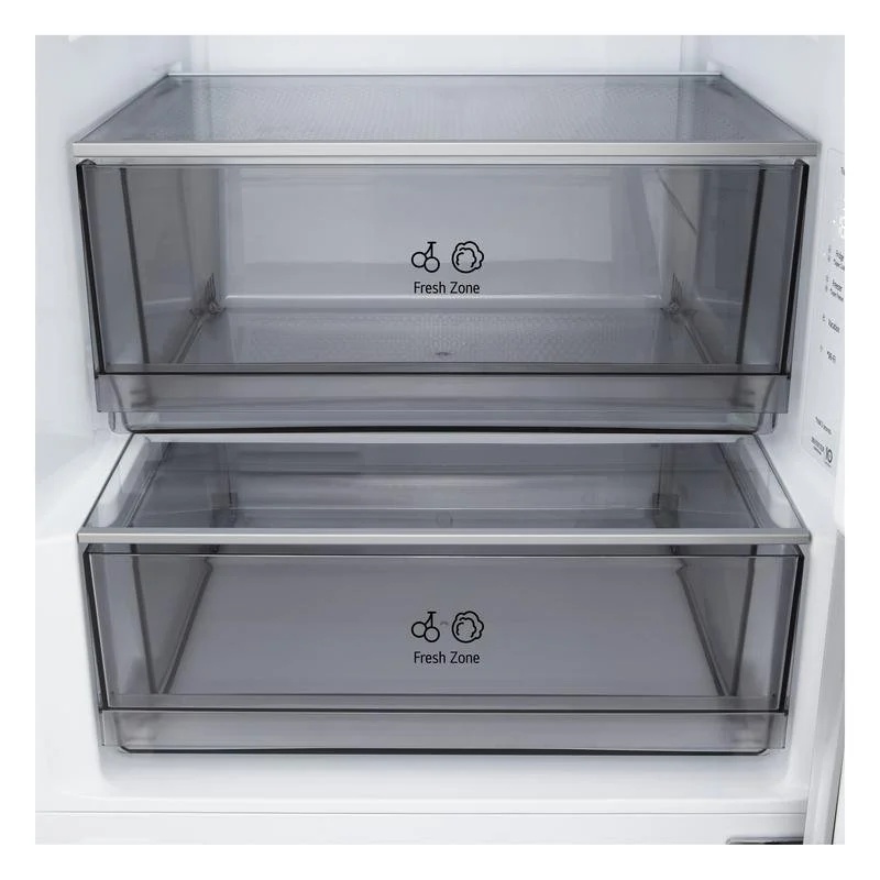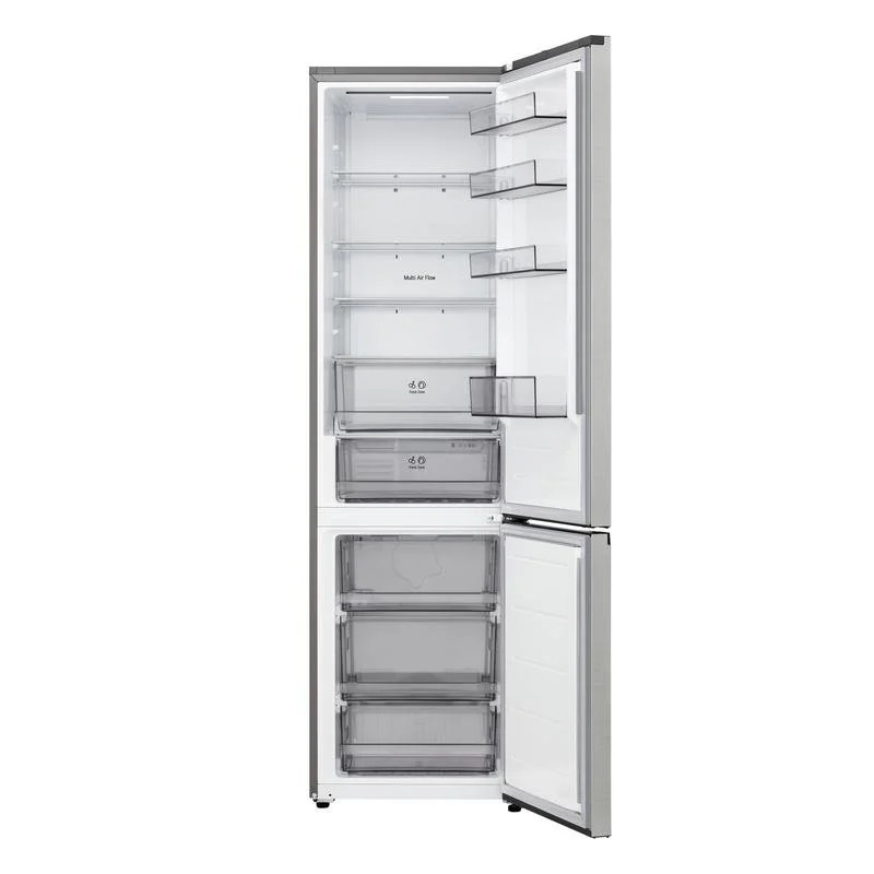Frigorífico combi LG GBBSJ20DPY de libre instalación con volumen total de 375 L distribuido entre compartimento frigorífico de 262 L y compartimento congelador de 113 L. Clase de eficiencia energética D según la clasificación europea dentro del rango de A a G. Consumo anual de energía de 210 kWh. Dimensiones de 203 cm de altura, 59,7 cm de anchura y 67,4 cm de profundidad. Sistema de frío No Frost. Sistemas DoorCooling+ y LinearCooling para circulación de aire y control de temperatura en el interior del compartimento frigorífico. Conectividad mediante red WiFi con compatibilidad con ThinQ y sistema SmartDiagnosis. Configuración vertical con compartimentos independientes para refrigeración y congelación accesibles mediante puertas frontales. El interior incluye estantes, balconeras en la puerta y cajones destinados a la organización de alimentos refrigerados y productos congelados. Estructura exterior con acabado en color inox. Configuración destinada a instalación independiente.