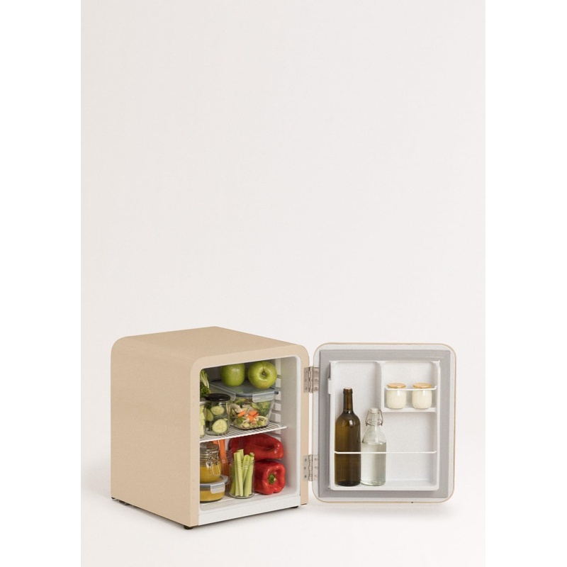 Frigorífico modelo RETRO FRIDGE 50 fabricado por CREATE con un compartimento de refrigeración. El aparato presenta una altura de 50 cm, anchura de 44 cm y profundidad de 49,8 cm. El compartimento de refrigeración dispone de una capacidad útil de 48 litros destinada al almacenamiento en frío. El nivel de emisión acústica es de 39 dB(A). La clasificación de eficiencia energética corresponde a la clase F según la normativa (UE) 2017/1369. La estructura interna incluye un estante y dos repisas para organización del espacio dentro del compartimento de refrigeración. El aparato corresponde a una unidad con instalación independiente y puerta frontal. El modelo RETRO FRIDGE 50 pertenece a la categoría de frigoríficos con un único compartimento de refrigeración dentro de una estructura compacta.