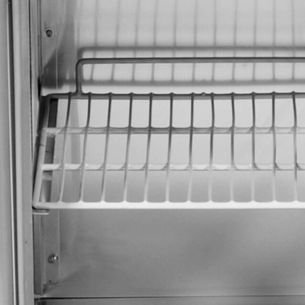Frigorífico modelo RETRO FRIDGE 50 fabricado por CREATE con un compartimento de refrigeración. El aparato presenta una altura de 50 cm, anchura de 44 cm y profundidad de 49,8 cm. El compartimento de refrigeración dispone de una capacidad útil de 48 litros destinada al almacenamiento en frío. El nivel de emisión acústica es de 39 dB(A). La clasificación de eficiencia energética corresponde a la clase F según la normativa (UE) 2017/1369. La estructura interna incluye un estante y dos repisas para organización del espacio dentro del compartimento de refrigeración. El aparato corresponde a una unidad con instalación independiente y puerta frontal. El modelo RETRO FRIDGE 50 pertenece a la categoría de frigoríficos con un único compartimento de refrigeración dentro de una estructura compacta.
