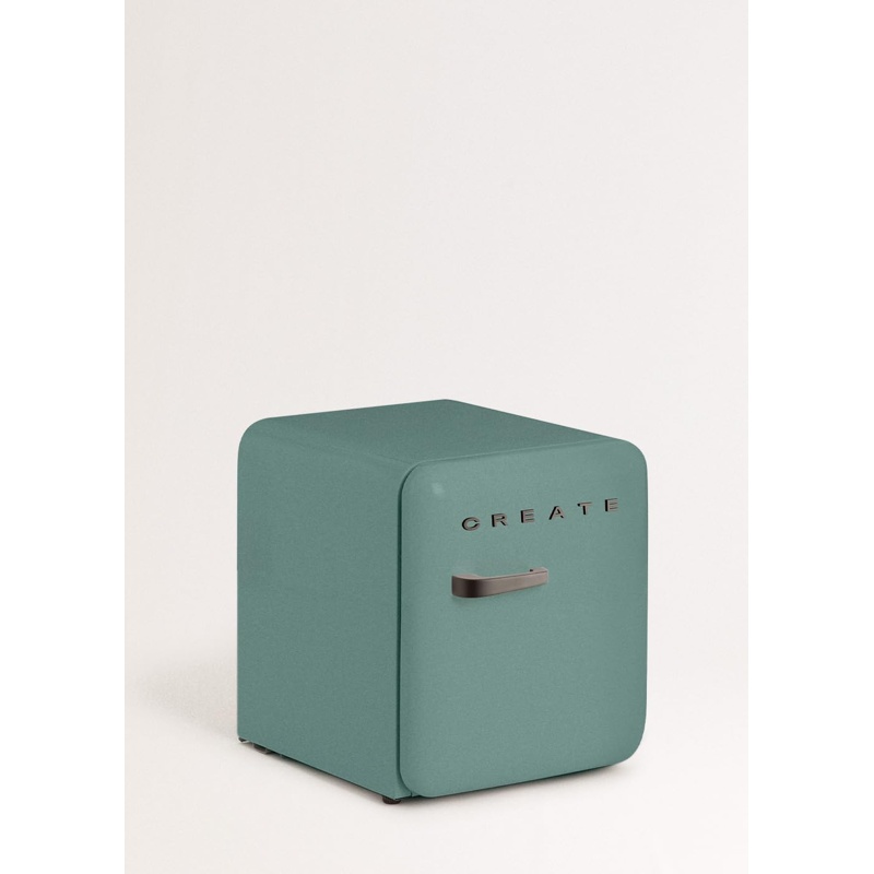 Frigorífico modelo RETRO FRIDGE 50 fabricado por CREATE con un compartimento de refrigeración. El aparato presenta una altura de 50 cm, anchura de 44 cm y profundidad de 49,8 cm. El compartimento de refrigeración dispone de una capacidad útil de 48 litros destinada al almacenamiento en frío. El nivel de emisión acústica es de 39 dB(A). La clasificación de eficiencia energética corresponde a la clase F según la normativa (UE) 2017/1369. La estructura interna incluye un estante y dos repisas para organización del espacio dentro del compartimento de refrigeración. El aparato corresponde a una unidad con instalación independiente y puerta frontal. El modelo RETRO FRIDGE 50 pertenece a la categoría de frigoríficos con un único compartimento de refrigeración dentro de una estructura compacta.
